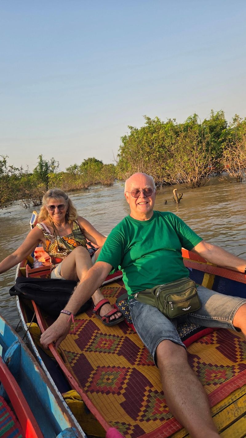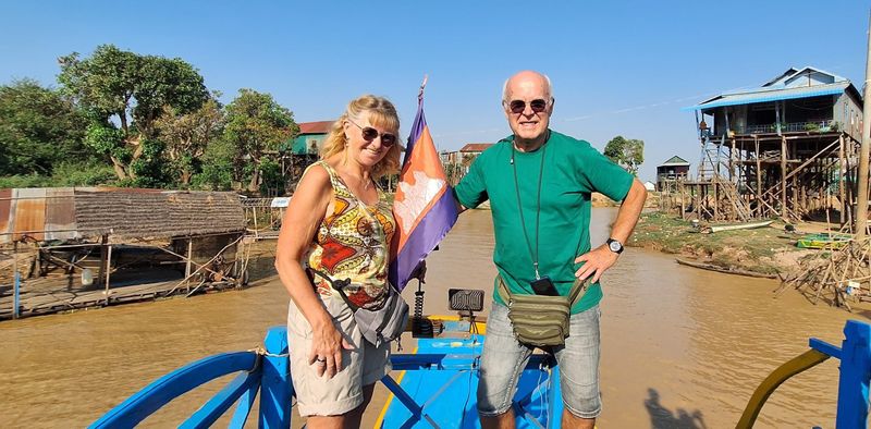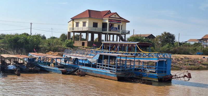 Resten av dagen drog me på tur med ei organisert gruppe. Det skulle vere ein utflukt til det dei kalla “Floating village”. Såg for meg ein slik landsby som me vitja i Halong Bay (Vietnam) I 2004. Der var heile byen på flytande pongtongar.