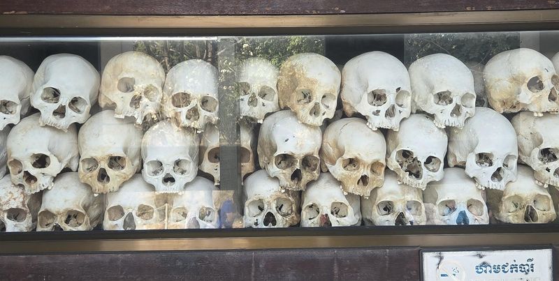 Groteskt dokumentert i dødsmarkene utfor Phnom Pehn.