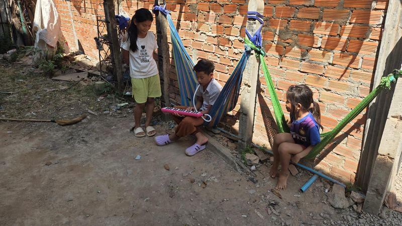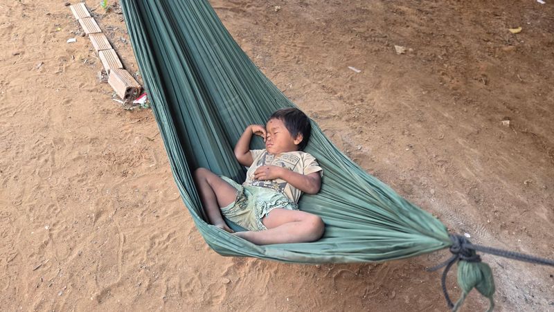 Ein som er trøtte. Kviletimen i hengekøye under huset.