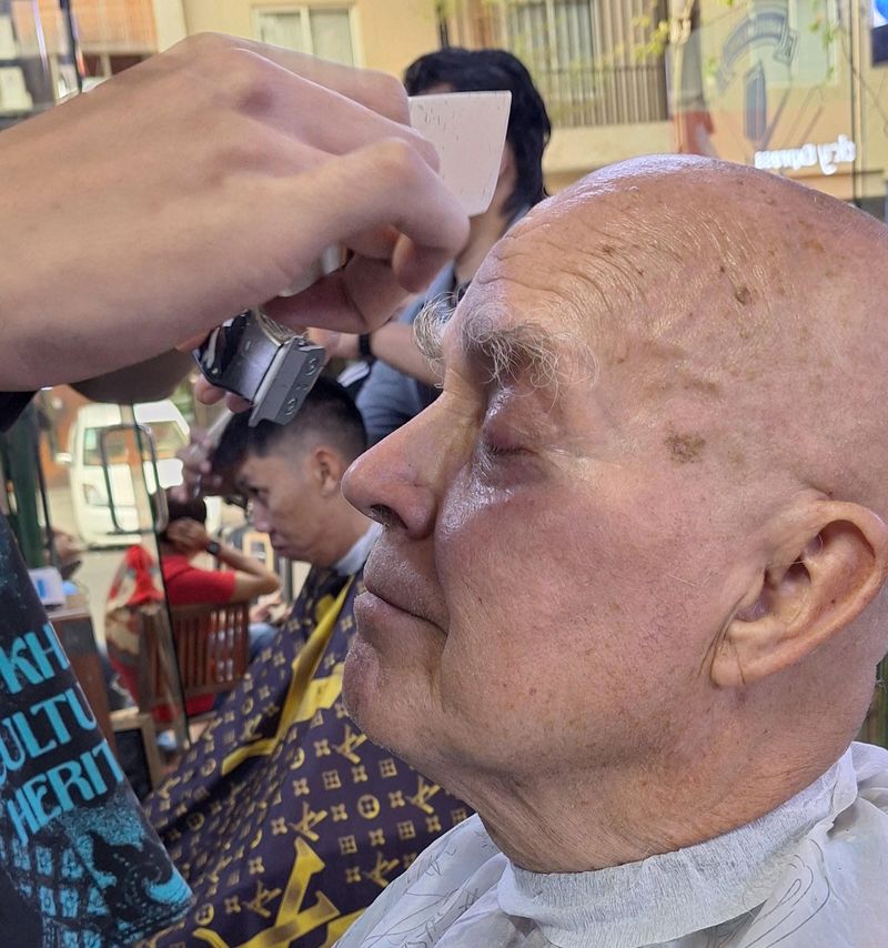 Alt blei litt betre då eg fjerna den varme hårmanken hos ein frisør me fant på vår gatevandring.