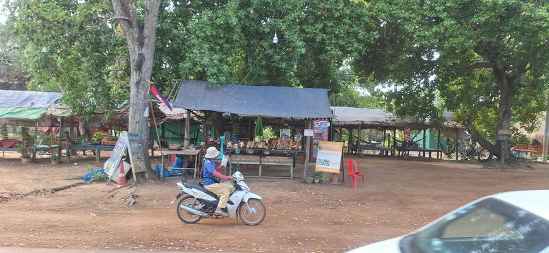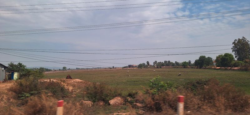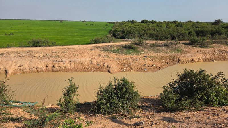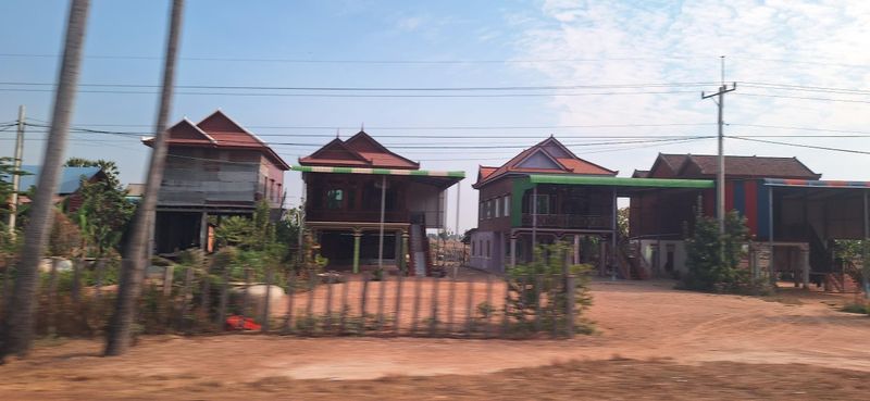 Turen med ein elektrisk(!) minibuss førde oss gjennon eit flatt gṛønt landskap med tydeleg preg av landbruks-verksemd. Kan tenke meg at mykje av grønsak- og fruktproduksjonen i Kambodja kjem frå.