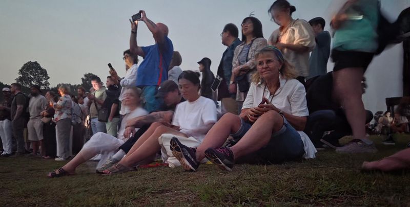 Unni og nokre hundre andre ville ha bilete av soloppgangen.