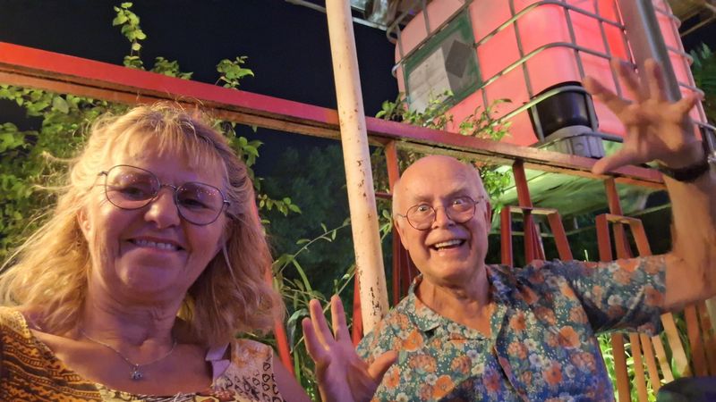 To glade besteforeldre på bar i Siem Reap.