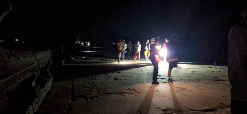 Me starta vår runde klokka 04.00. Me ville få med oss soloppgangen over tempelplassen. I svarte nottå blei me henta og kjøyrd te inngangen med ein lokal mann som guide.