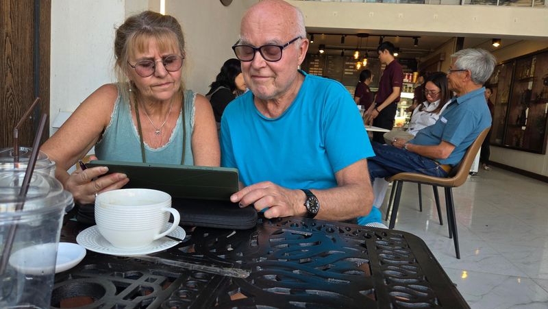 Pakka altt for reisen i natt og vandra rund i byen, i dei nære omgivnaden. Sat på ein cafe, spiste, drakk og surfa på nett. Unni har bestemt å bestemt å fikse bloggen på blogspot direkte uten