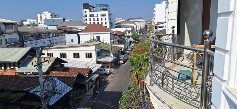 Framme i Vietiane fekk med buss til sentrum og hotellet med hadde tinga på Booking.